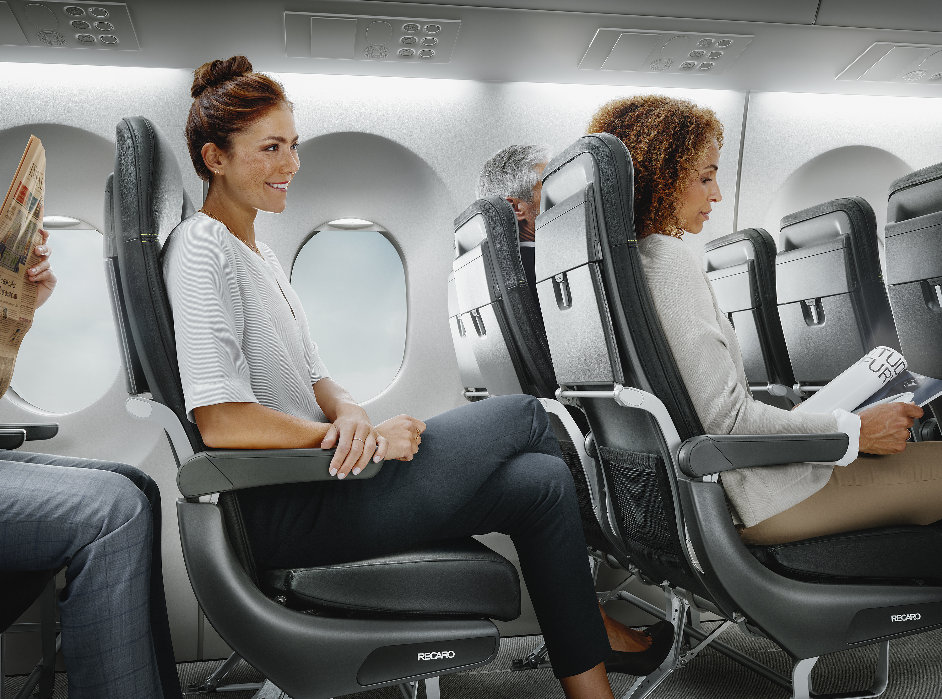 Developed with sustainability in-mind, both seats receive top marks in lightweight design, which support in reducing fuel costs and carbon emissions for the aircraft. The slim backrest of the Recaro SL3710 enhances living space and maximizes comfort, while the BL3710 supports passengers on short and medium-haul flights with its award-winning ergonomic seat design.